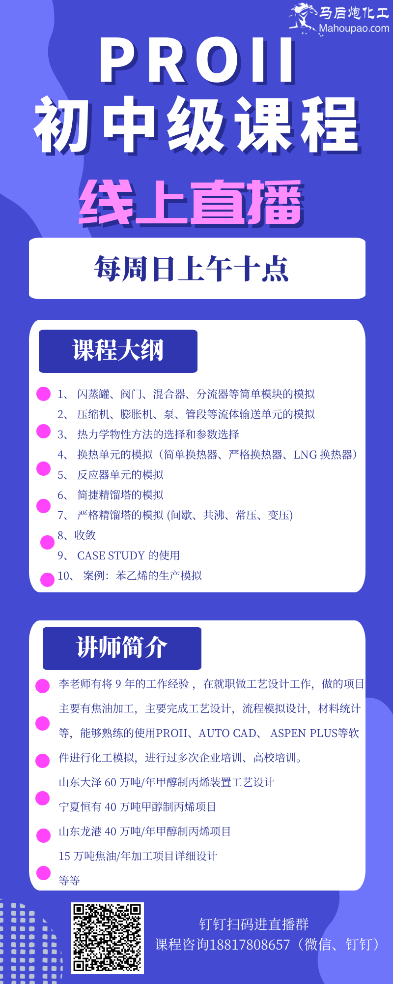 想要学好这个软件,你需要看看这个proII初中级课程,本周日10点上线,让你不再迷茫工艺模拟那些事!