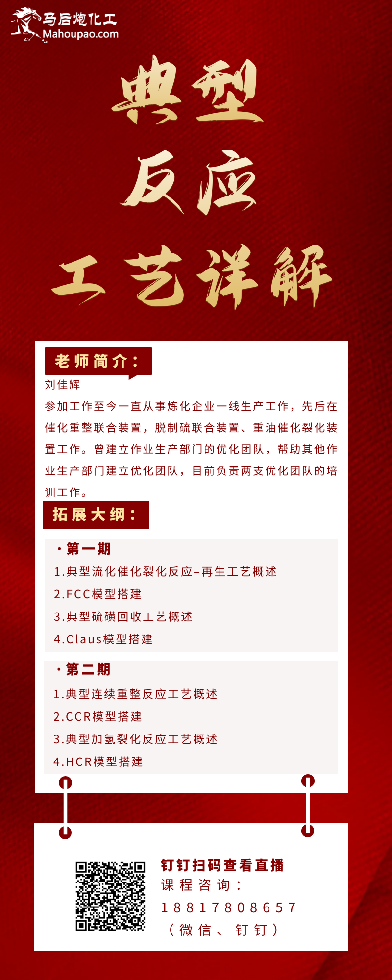为此,我们特选其中的典型流化催化裂化反应、典型硫磺回收反应、典型连续重整反应、典型加氢裂化反应进行详解,内容包括FCC模型、Claus模型、CCR模型、HCR模型搭建与工艺概述。